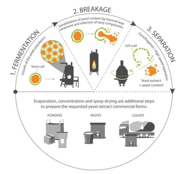 L’extrait de levure est produit à partir de levure fraîche. Sous l’effet conjugué de la chaleur et d’enzymes spécifiques :